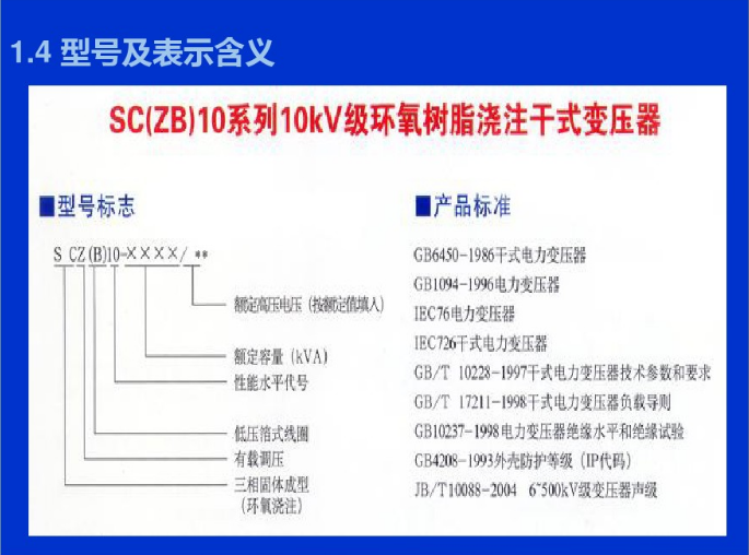 ⒊澆注式:用環(huán)氧樹脂或其它樹脂澆注作為主絕緣,它結構簡單、體積小,適用于較小容量的變壓器。
